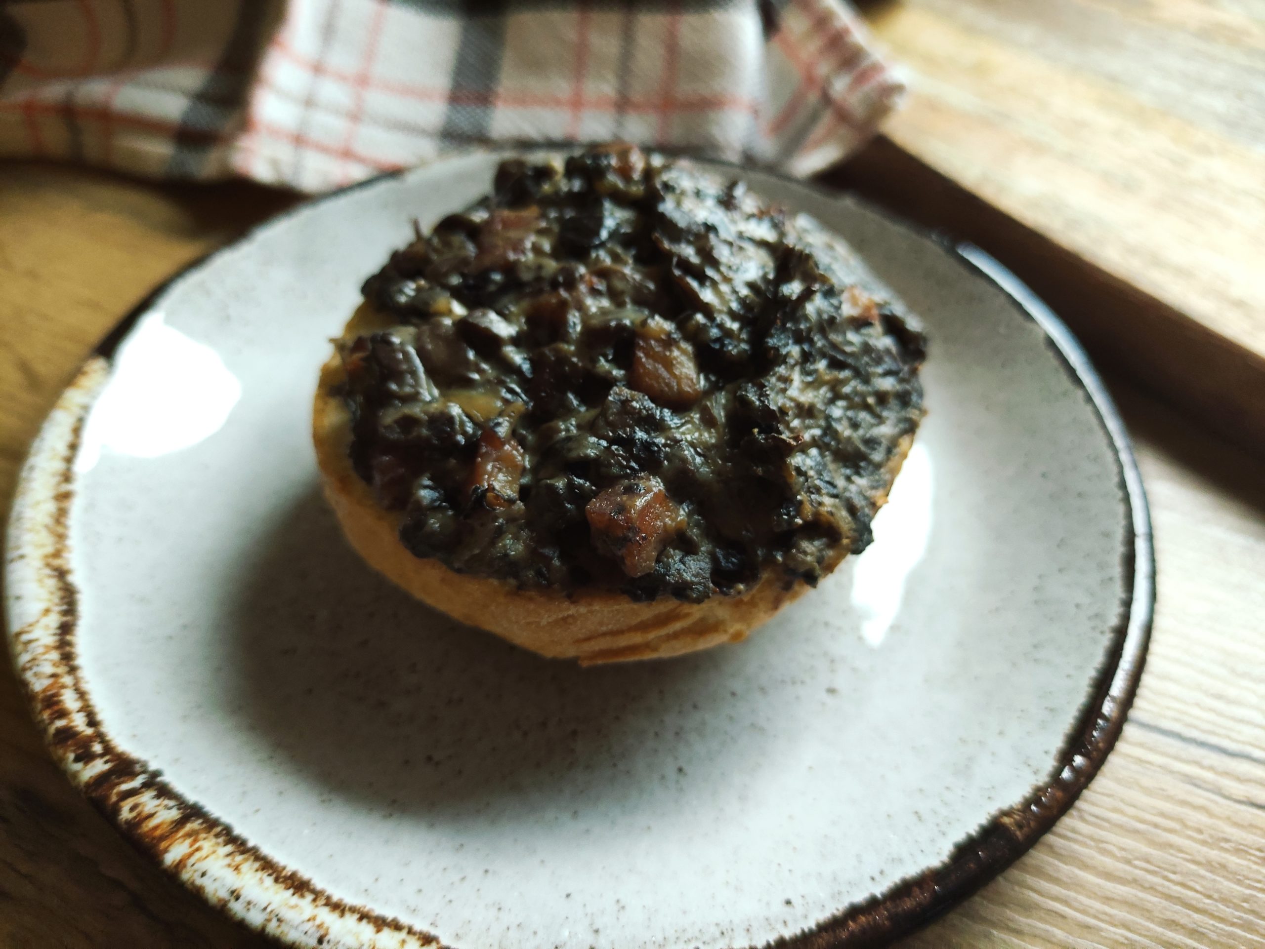 Mąkę, wodę, jajka, sól i pieprz razem zmieszać i dodać do powstałego ciasta posiekany szczypiorek, kawałki szynki/mięsa, pokrojone w kostkę cebulę, paprykę oraz pieczarki. Wszystko razem wymieszać i odstawić na ok 30 minut.
